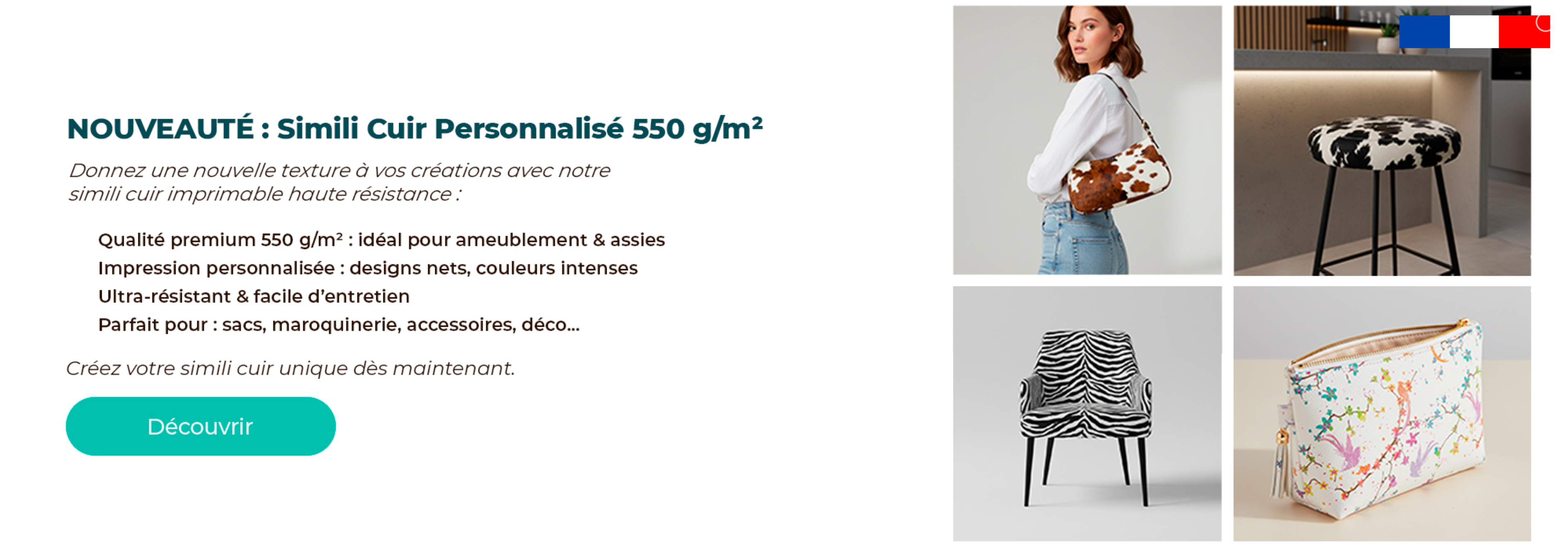 Technologie d'impression qui permet d'imprimer en direct des motifs personnalisés sur tissus en PVC (simili cuir, bâche PVC, cristal...)
